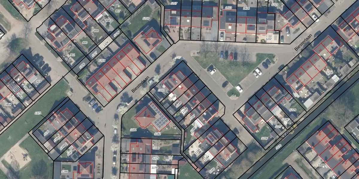 Biesterlaan 84 is gelegen op kadastraal perceel HTN04I1190. Deze kadastrale aanduiding is uniek en wordt gebruikt door het Kadaster om eigendomsrechten en andere zakelijke rechten vast te leggen. Het perceel maakt onderdeel uit van de kadastrale gemeente Houten.