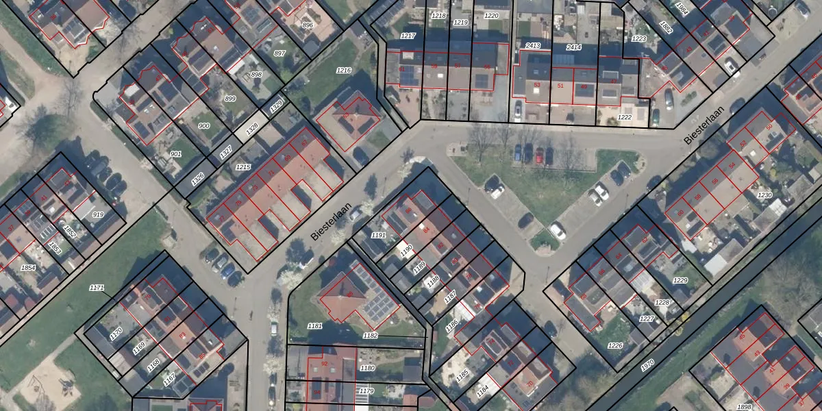 Het perceel waarop Biesterlaan 86 staat heeft een oppervlakte van 223 m². Dit is een middelgroot perceel. De perceeloppervlakte wordt geregistreerd door het Kadaster. Gedetailleerde informatie over de maten van dit perceel kunt u vinden in het rapport Kadastrale kaart met maatvoering van Biesterlaan 86.