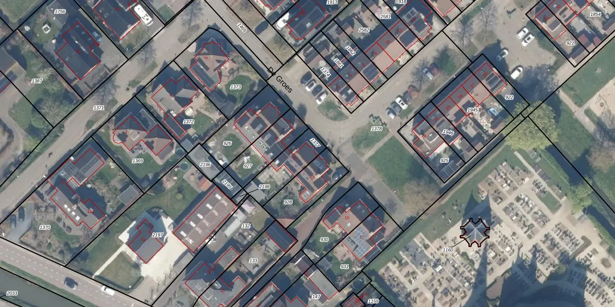 Het perceel waarop De Groes 11 staat heeft een oppervlakte van 250 m². Dit is een middelgroot perceel. De perceeloppervlakte wordt geregistreerd door het Kadaster. Gedetailleerde informatie over de maten van dit perceel kunt u vinden in het rapport Kadastrale kaart met maatvoering van De Groes 11.