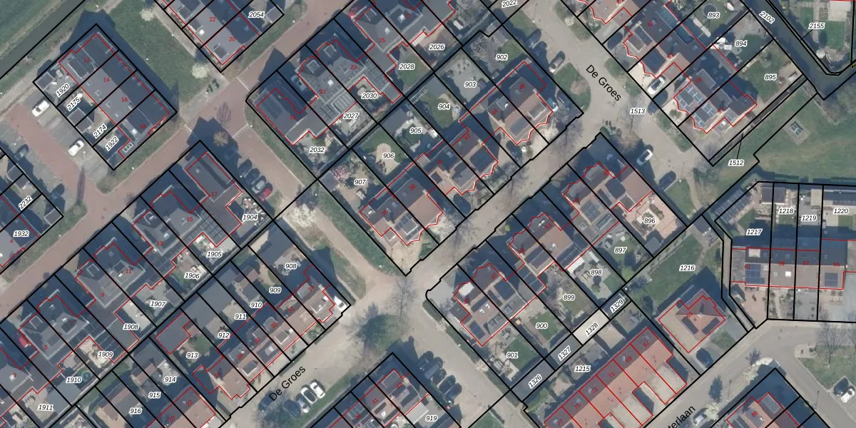 Het perceel waarop De Groes 38 staat heeft een oppervlakte van 265 m². Dit is een middelgroot perceel. De perceeloppervlakte wordt geregistreerd door het Kadaster. Gedetailleerde informatie over de maten van dit perceel kunt u vinden in het rapport Kadastrale kaart met maatvoering van De Groes 38.