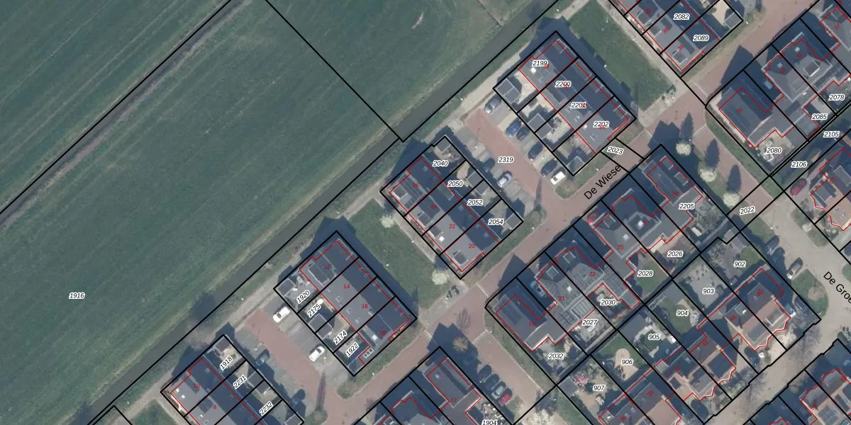 De Wiese 24 is gelegen op kadastraal perceel HTN04I2050. Deze kadastrale aanduiding is uniek en wordt gebruikt door het Kadaster om eigendomsrechten en andere zakelijke rechten vast te leggen. Het perceel maakt onderdeel uit van de kadastrale gemeente Houten.