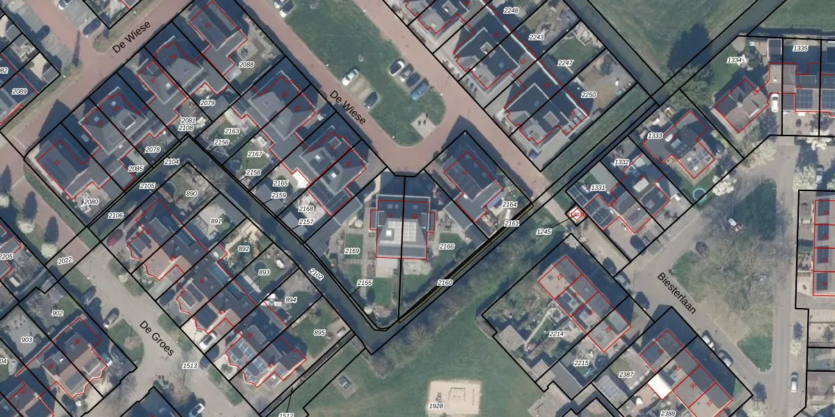 Het perceel waarop De Wiese 53 staat heeft een oppervlakte van 408 m². Dit is een groot perceel. De perceeloppervlakte wordt geregistreerd door het Kadaster. Gedetailleerde informatie over de maten van dit perceel kunt u vinden in het rapport Kadastrale kaart met maatvoering van De Wiese 53.