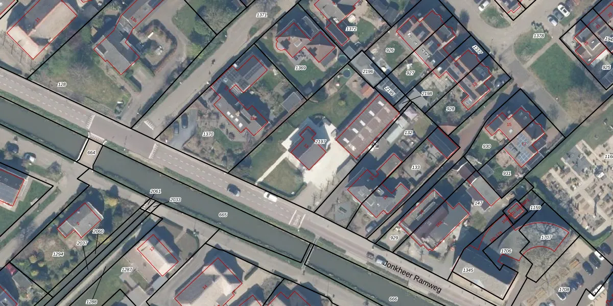 Jonkheer Ramweg 13 is gelegen op kadastraal perceel HTN04I2197. Deze kadastrale aanduiding is uniek en wordt gebruikt door het Kadaster om eigendomsrechten en andere zakelijke rechten vast te leggen. Het perceel maakt onderdeel uit van de kadastrale gemeente Houten.
