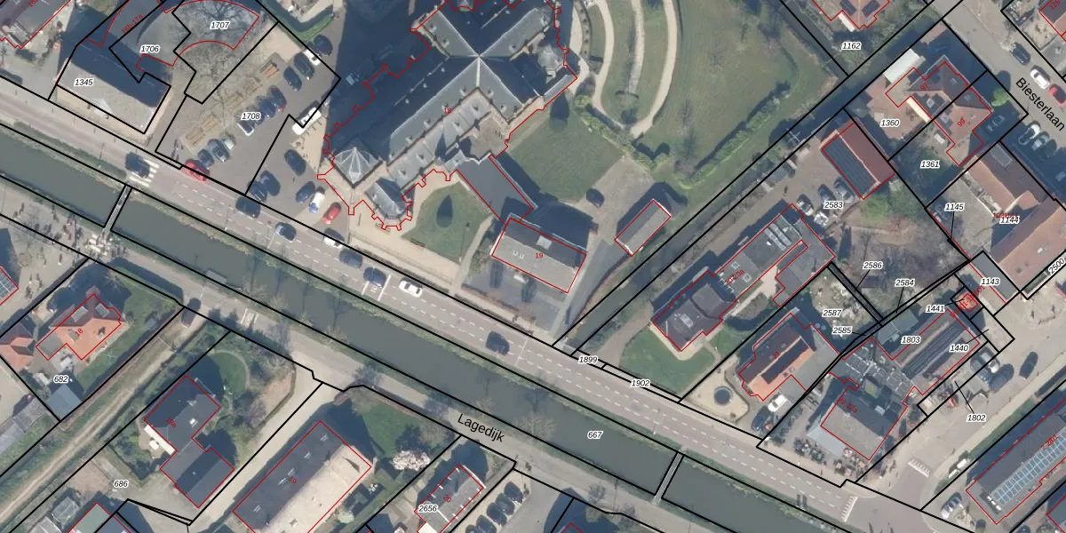 Het adres is gelegen op perceel 1709 in de sectie I en de kadastrale gemeente Houten. De kadastrale aanduiding is aldus HTN04-I-1709. Het perceel is met 8704 m² relatief groot. Het gemiddelde ligt in de kadastrale gemeente Houten op 2872,44 m². Het grootste perceel in de kadastrale gemeente is 45,3 ha. Het kleinste perceel heeft een oppervlakte van 0 m². Op het perceel zijn 4 adressen aanwezig. De laatste wijziging in het de Basisregistratie Kadaster (BRK) was op 02-08-2012.