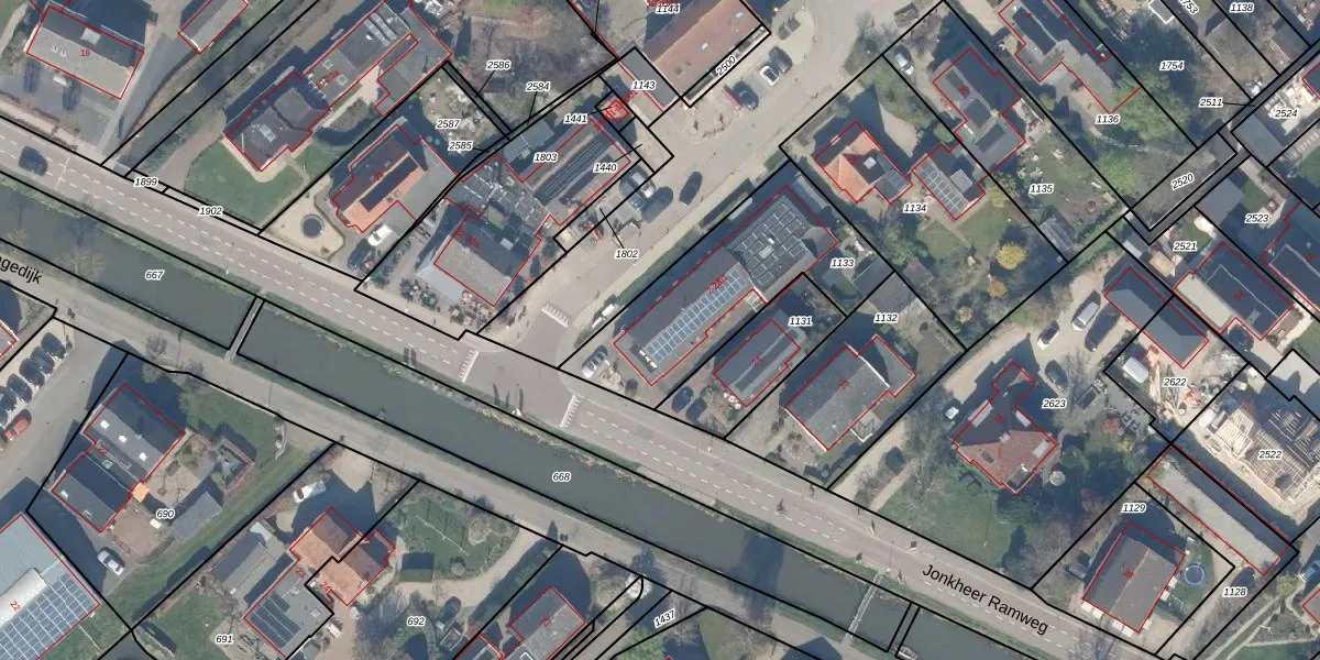 Jonkheer Ramweg 23 is gelegen op kadastraal perceel HTN04I1133. Deze kadastrale aanduiding is uniek en wordt gebruikt door het Kadaster om eigendomsrechten en andere zakelijke rechten vast te leggen. Het perceel maakt onderdeel uit van de kadastrale gemeente Houten.