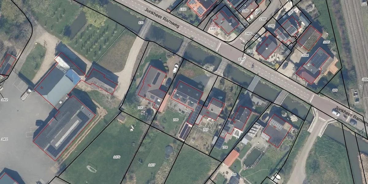 Het perceel waarop Jonkheer Ramweg 44 staat heeft een oppervlakte van 845 m². Dit is een groot perceel. De perceeloppervlakte wordt geregistreerd door het Kadaster. Gedetailleerde informatie over de maten van dit perceel kunt u vinden in het rapport Kadastrale kaart met maatvoering van Jonkheer Ramweg 44.
