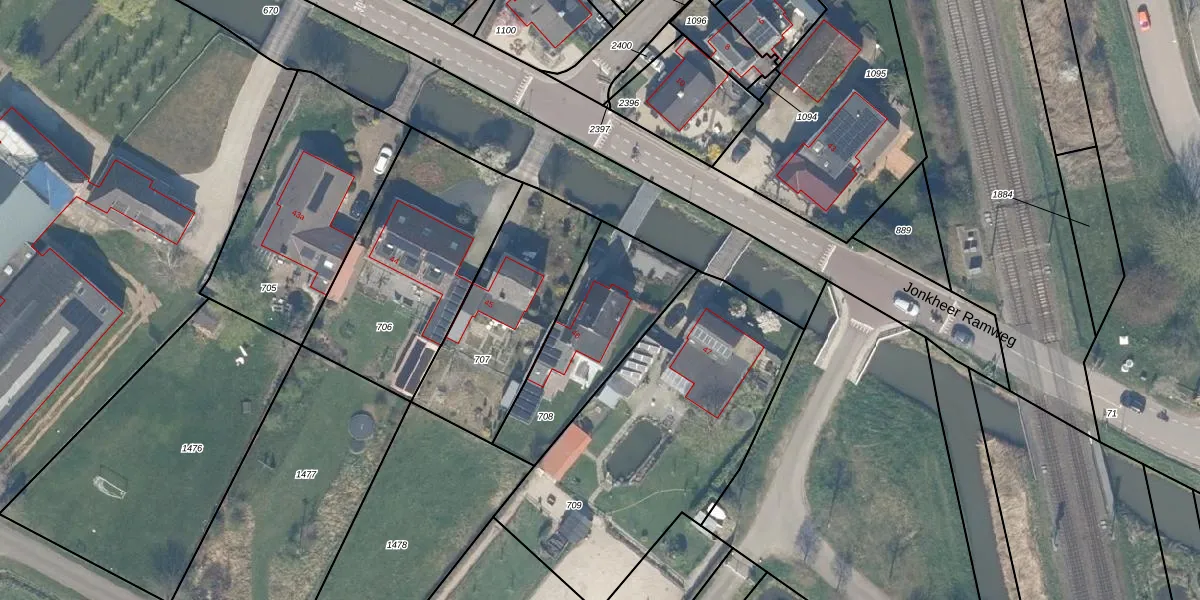 Jonkheer Ramweg 46 is gelegen op kadastraal perceel HTN04I708. Deze kadastrale aanduiding is uniek en wordt gebruikt door het Kadaster om eigendomsrechten en andere zakelijke rechten vast te leggen. Het perceel maakt onderdeel uit van de kadastrale gemeente Houten.