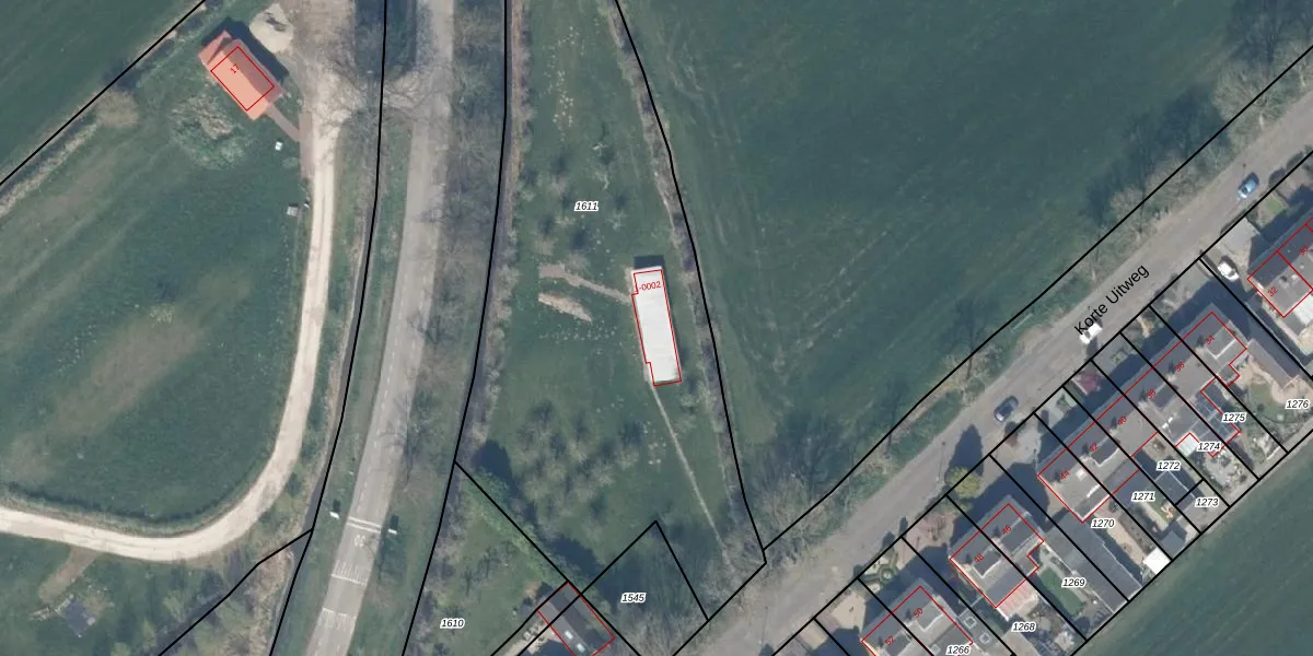 Korte Uitweg 1-0002 is gelegen op kadastraal perceel HTN04I1611. Deze kadastrale aanduiding is uniek en wordt gebruikt door het Kadaster om eigendomsrechten en andere zakelijke rechten vast te leggen. Het perceel maakt onderdeel uit van de kadastrale gemeente Houten.