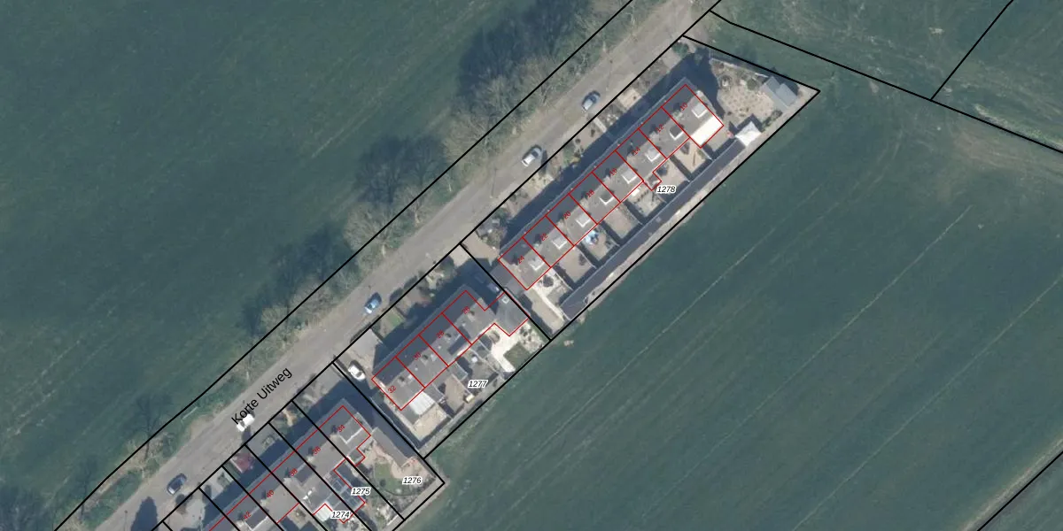 Korte Uitweg 24 is gelegen op kadastraal perceel HTN04I1278. Deze kadastrale aanduiding is uniek en wordt gebruikt door het Kadaster om eigendomsrechten en andere zakelijke rechten vast te leggen. Het perceel maakt onderdeel uit van de kadastrale gemeente Houten.