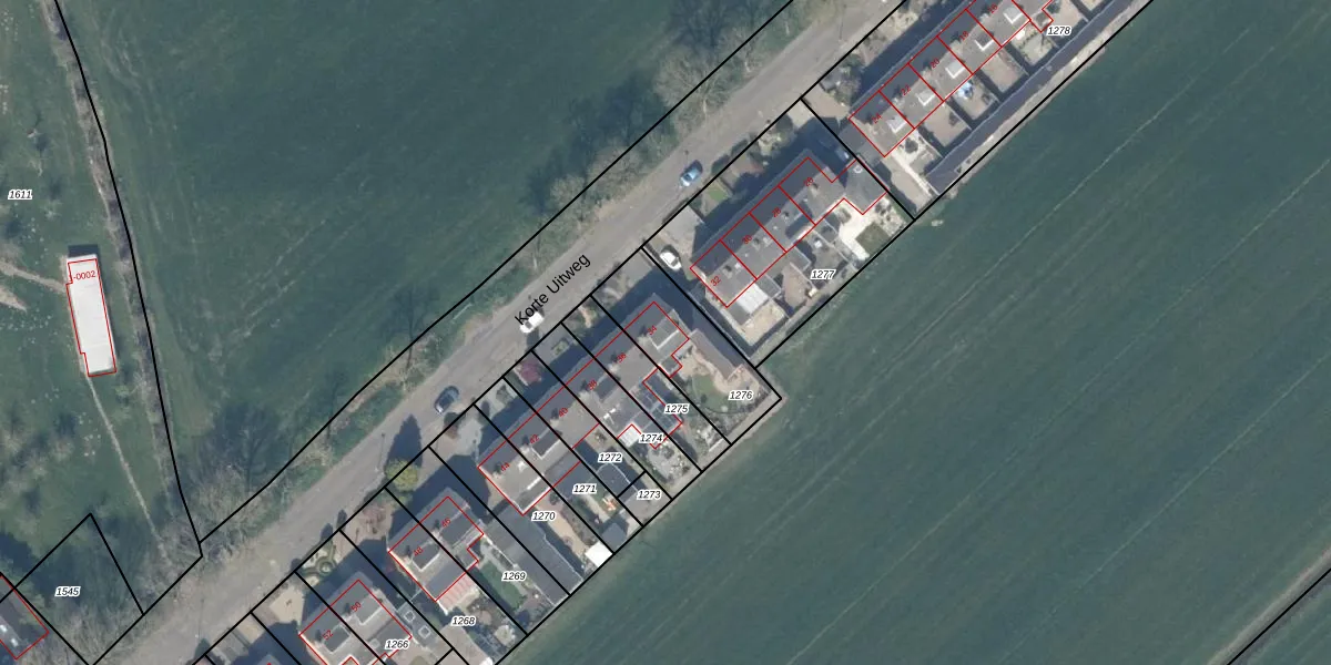 Korte Uitweg 34 is gelegen op kadastraal perceel HTN04I1276. Deze kadastrale aanduiding is uniek en wordt gebruikt door het Kadaster om eigendomsrechten en andere zakelijke rechten vast te leggen. Het perceel maakt onderdeel uit van de kadastrale gemeente Houten.