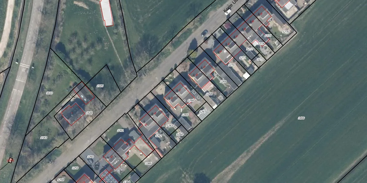 Korte Uitweg 50 is gelegen op kadastraal perceel HTN04I1266. Deze kadastrale aanduiding is uniek en wordt gebruikt door het Kadaster om eigendomsrechten en andere zakelijke rechten vast te leggen. Het perceel maakt onderdeel uit van de kadastrale gemeente Houten.
