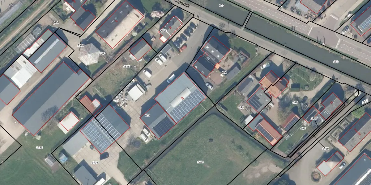 Het perceel waarop Lagedijk 22 staat heeft een oppervlakte van 2505 m². Dit is een zeer groot perceel. De perceeloppervlakte wordt geregistreerd door het Kadaster. Gedetailleerde informatie over de maten van dit perceel kunt u vinden in het rapport Kadastrale kaart met maatvoering van Lagedijk 22.
