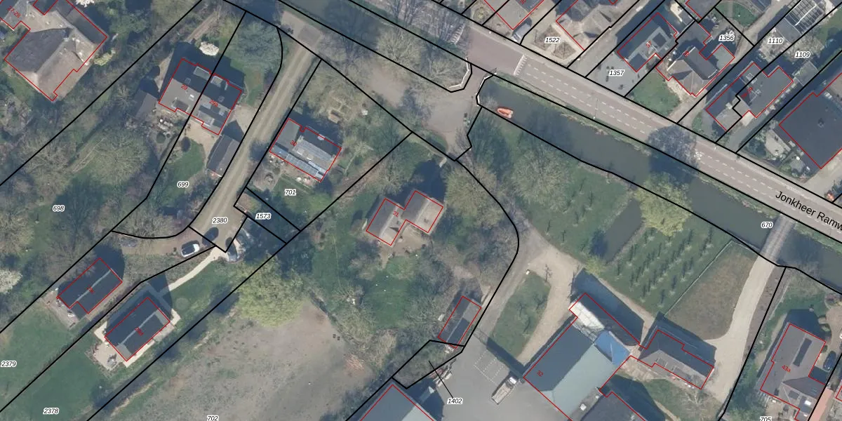 Het adres is gelegen op perceel 702 in de sectie I en de kadastrale gemeente Houten. De kadastrale aanduiding is aldus HTN04-I-702. Het perceel is met 5100 m² relatief groot. Het gemiddelde ligt in de kadastrale gemeente Houten op 2872,58 m². Het grootste perceel in de kadastrale gemeente is 45,3 ha. Het kleinste perceel heeft een oppervlakte van 0 m². Op het perceel bevinden zich geen andere adressen. De laatste wijziging in het de Basisregistratie Kadaster (BRK) was op 17-12-2003.