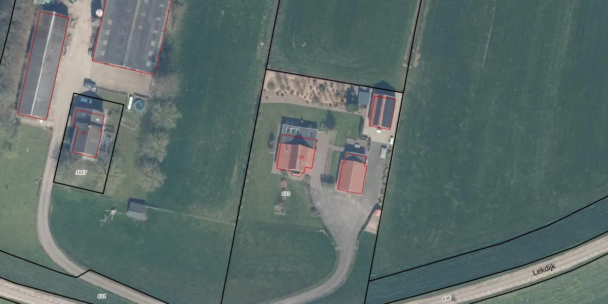 Lekdijk 22 is gelegen op kadastraal perceel HTN04I633. Deze kadastrale aanduiding is uniek en wordt gebruikt door het Kadaster om eigendomsrechten en andere zakelijke rechten vast te leggen. Het perceel maakt onderdeel uit van de kadastrale gemeente Houten.