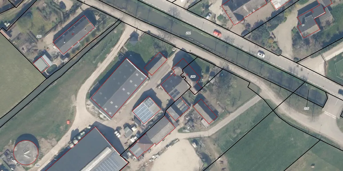 Het perceel waarop het adres ligt is HTN04-K-265. De afkorting 'HTN04' staat voor kadastrale gemeente Houten. Het perceel is met 1,0 ha relatief groot. Het gemiddelde ligt in de kadastrale gemeente Houten op 2872,58 m². De grootste perceeloppervlakte in de kadastrale gemeente is 45,3 ha. De kleinste oppervlakte bedraagt 0 m². Dit is het enige adres dat aanwezig is op het perceel. De laatste wijziging in het de Basisregistratie Kadaster (BRK) was op 06-01-1998.