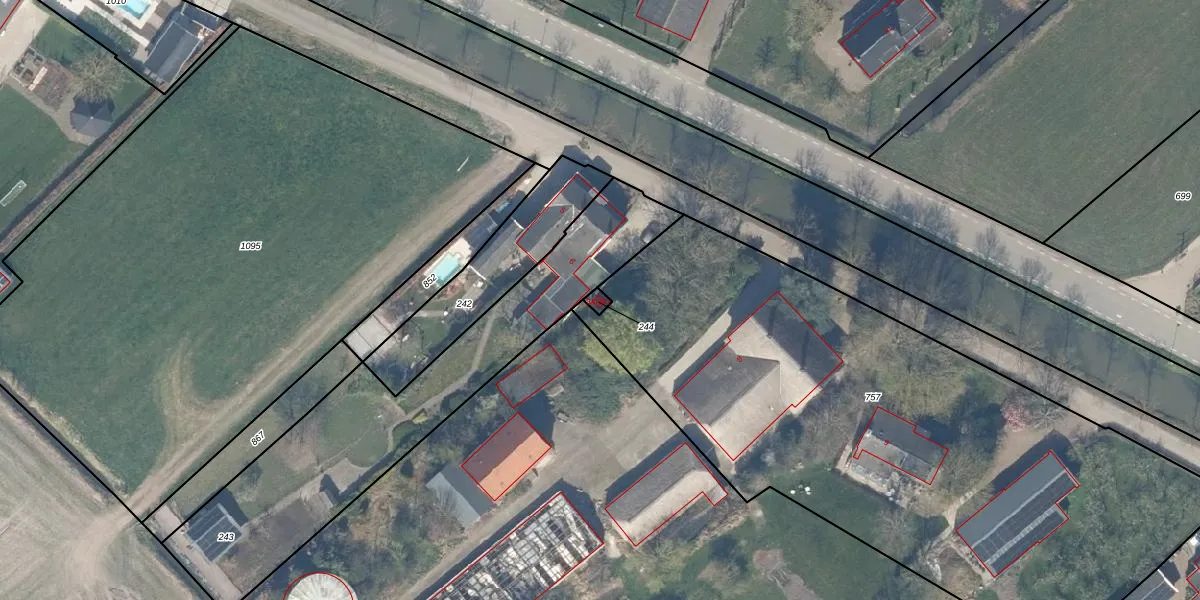 Het perceel waarop het adres ligt is HTN04-K-244. De afkorting 'HTN04' staat voor kadastrale gemeente Houten. De gemiddelde perceelgrootte in Houten is 2872,58 m². Dit perceel is kleiner: de perceeloppervlakte bedraagt 10 m². Het kleinste perceel in de kadastrale gemeente is 0 m² groot. De grootste perceeloppervlakte is 45,3 ha. Dit is het enige adres dat aanwezig is op het perceel. De huidige grenzen van het perceel zijn digitaal in de Basisregistratie Kadaster (BRK) geregistreerd op 12-02-2008.