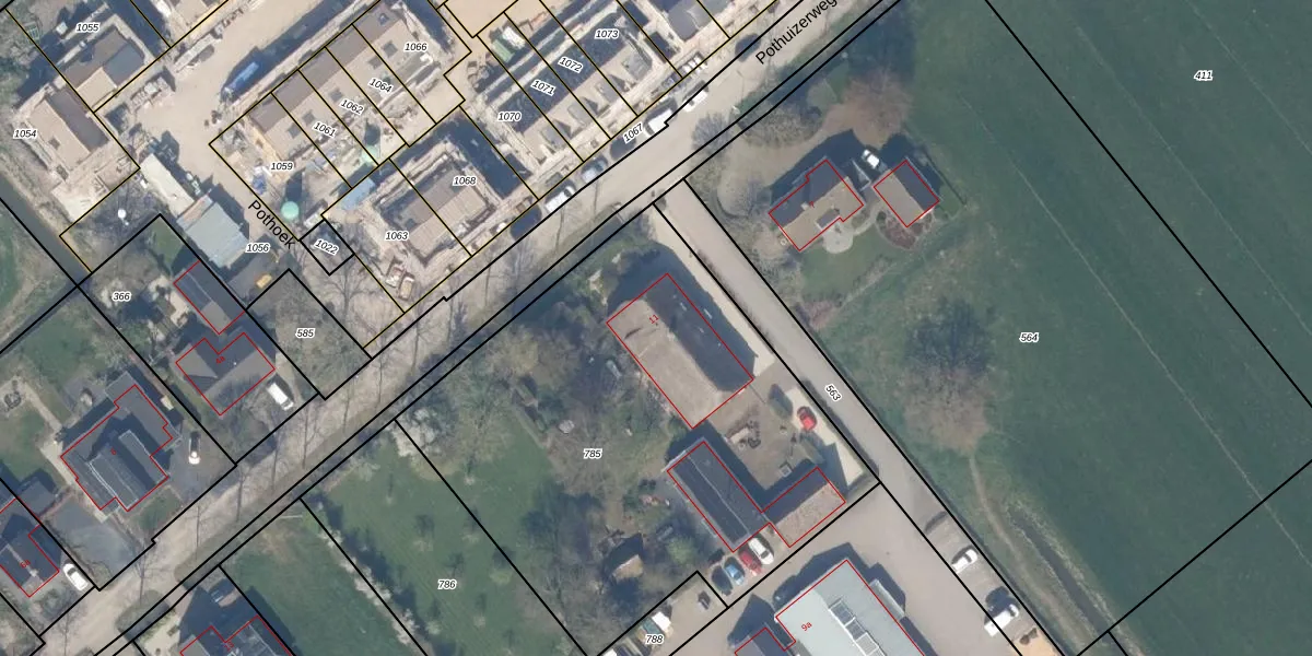 Pothuizerweg 11 is gelegen op kadastraal perceel HTN04K785. Deze kadastrale aanduiding is uniek en wordt gebruikt door het Kadaster om eigendomsrechten en andere zakelijke rechten vast te leggen. Het perceel maakt onderdeel uit van de kadastrale gemeente Houten.