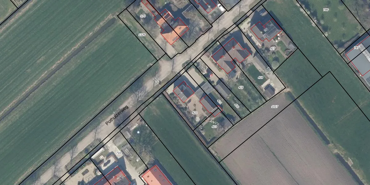 Pothuizerweg 17 is gelegen op kadastraal perceel HTN04K422. Deze kadastrale aanduiding is uniek en wordt gebruikt door het Kadaster om eigendomsrechten en andere zakelijke rechten vast te leggen. Het perceel maakt onderdeel uit van de kadastrale gemeente Houten.