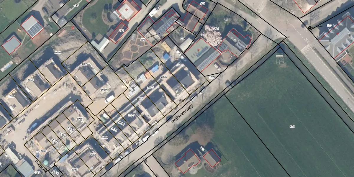 Pothuizerweg 2-b is gelegen op kadastraal perceel HTN04K1076. Deze kadastrale aanduiding is uniek en wordt gebruikt door het Kadaster om eigendomsrechten en andere zakelijke rechten vast te leggen. Het perceel maakt onderdeel uit van de kadastrale gemeente Houten.
