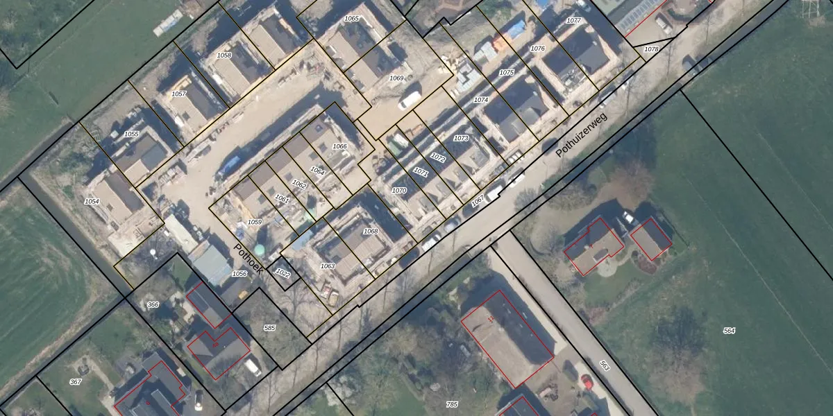 Pothuizerweg 2-j is gelegen op kadastraal perceel HTN04K1070. Deze kadastrale aanduiding is uniek en wordt gebruikt door het Kadaster om eigendomsrechten en andere zakelijke rechten vast te leggen. Het perceel maakt onderdeel uit van de kadastrale gemeente Houten.