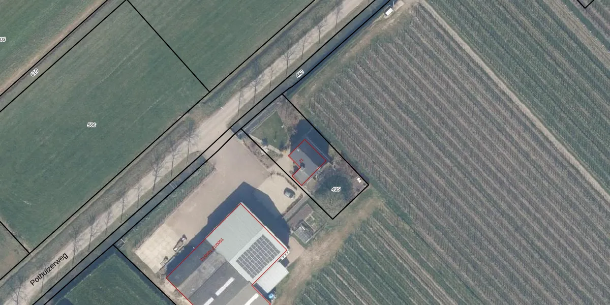 Pothuizerweg 21 is gelegen op kadastraal perceel HTN04K435. Deze kadastrale aanduiding is uniek en wordt gebruikt door het Kadaster om eigendomsrechten en andere zakelijke rechten vast te leggen. Het perceel maakt onderdeel uit van de kadastrale gemeente Houten.