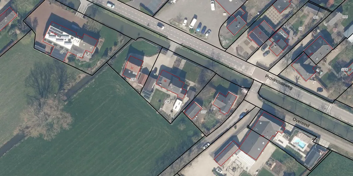 Provincialeweg 19 is gelegen op kadastraal perceel HTN04K236. Deze kadastrale aanduiding is uniek en wordt gebruikt door het Kadaster om eigendomsrechten en andere zakelijke rechten vast te leggen. Het perceel maakt onderdeel uit van de kadastrale gemeente Houten.