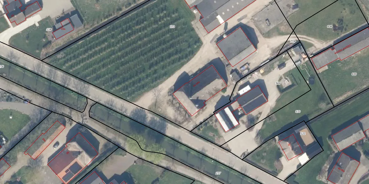 Het perceel waarop Provincialeweg 44 staat heeft een oppervlakte van 8555 m². Dit is een zeer groot perceel. De perceeloppervlakte wordt geregistreerd door het Kadaster. Gedetailleerde informatie over de maten van dit perceel kunt u vinden in het rapport Kadastrale kaart met maatvoering van Provincialeweg 44.