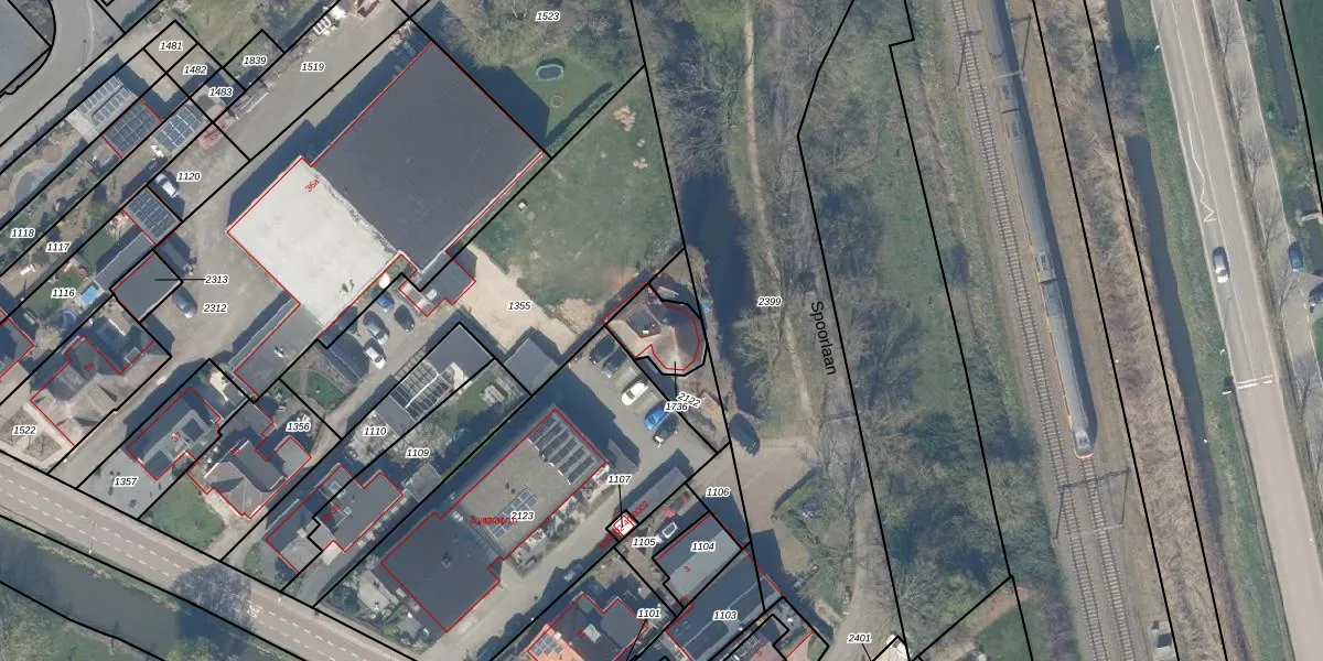 Spoorlaan 1 is gelegen op kadastraal perceel HTN04I1736. Deze kadastrale aanduiding is uniek en wordt gebruikt door het Kadaster om eigendomsrechten en andere zakelijke rechten vast te leggen. Het perceel maakt onderdeel uit van de kadastrale gemeente Houten.