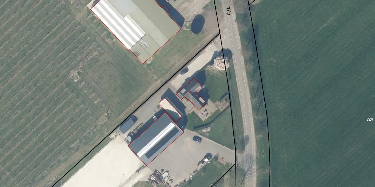 Het perceel waarop Trip 5 staat heeft een oppervlakte van 1,2 ha. Dit is een zeer groot perceel. De perceeloppervlakte wordt geregistreerd door het Kadaster. Gedetailleerde informatie over de maten van dit perceel kunt u vinden in het rapport Kadastrale kaart met maatvoering van Trip 5.