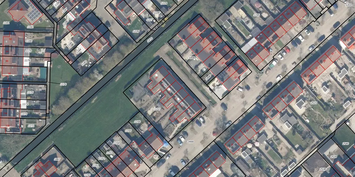 Het adres is gelegen op perceel 1157 in de sectie I en de kadastrale gemeente Houten. De kadastrale aanduiding is aldus HTN04-I-1157. De gemiddelde perceelgrootte in Houten is 2869,78 m². Dit perceel is kleiner: de perceeloppervlakte bedraagt 1110 m². Het grootste perceel in de kadastrale gemeente is 45,3 ha. Het kleinste perceel heeft een oppervlakte van 0 m². Op het perceel zijn 6 adressen aanwezig. De laatste wijziging in het de Basisregistratie Kadaster (BRK) was op 16-07-1998.
