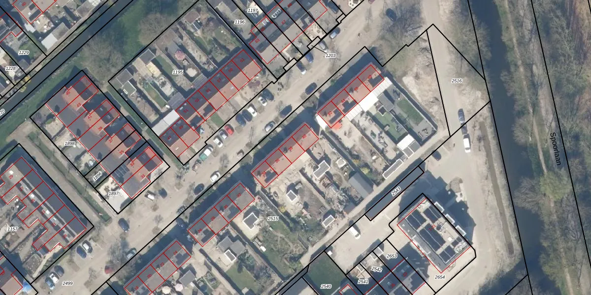 Het adres is gelegen op perceel 2515 in de sectie I en de kadastrale gemeente Houten. De kadastrale aanduiding is aldus HTN04-I-2515. Het perceel is met 5806 m² relatief groot. Het gemiddelde ligt in de kadastrale gemeente Houten op 2871,6 m². Het grootste perceel in de kadastrale gemeente is 45,3 ha. Het kleinste perceel heeft een oppervlakte van 0 m². Er zijn 16 adressen aanwezig op het perceel. In de Basisregistratie Kadaster (BRK) werden de grenzen van het perceel geregistreerd op 13-03-2025.