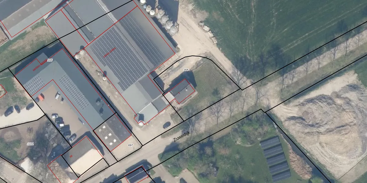 Het perceel waarop Zuwedijk 1 staat heeft een oppervlakte van 955 m². Dit is een groot perceel. De perceeloppervlakte wordt geregistreerd door het Kadaster. Gedetailleerde informatie over de maten van dit perceel kunt u vinden in het rapport Kadastrale kaart met maatvoering van Zuwedijk 1.