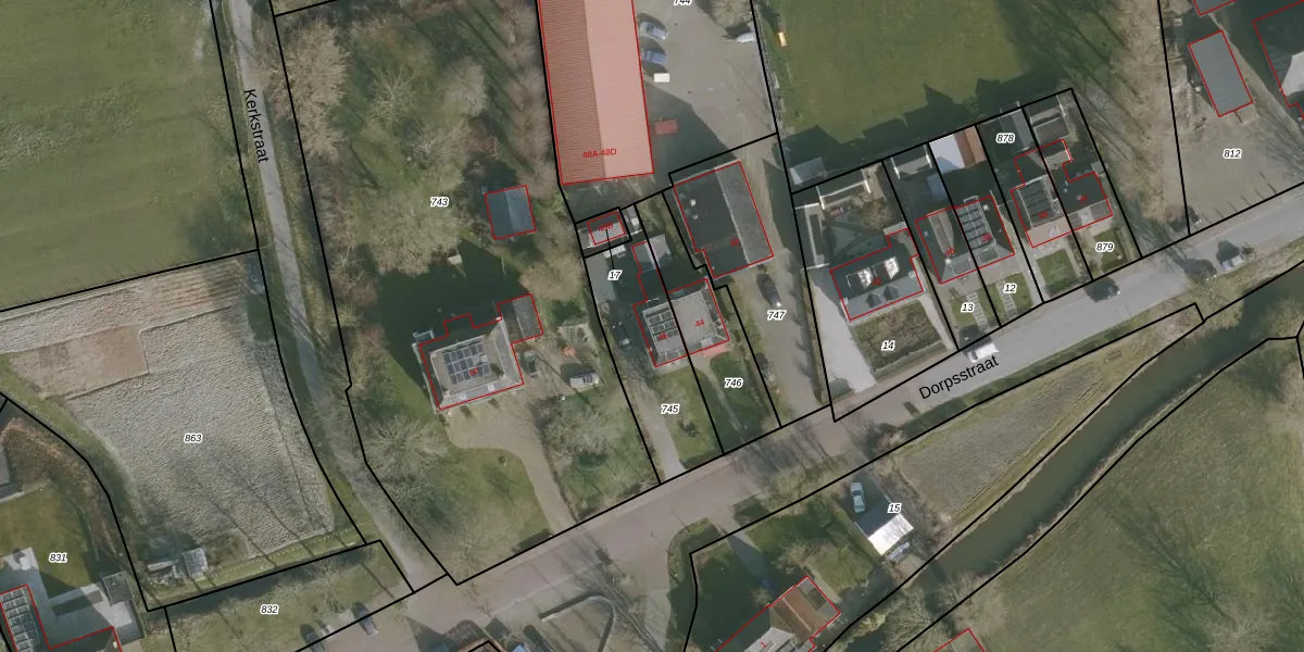 Het perceel waarop Dorpsstraat 46 staat heeft een oppervlakte van 408 m². Dit is een groot perceel. De perceeloppervlakte wordt geregistreerd door het Kadaster. Gedetailleerde informatie over de maten van dit perceel kunt u vinden in het rapport Kadastrale kaart met maatvoering van Dorpsstraat 46.