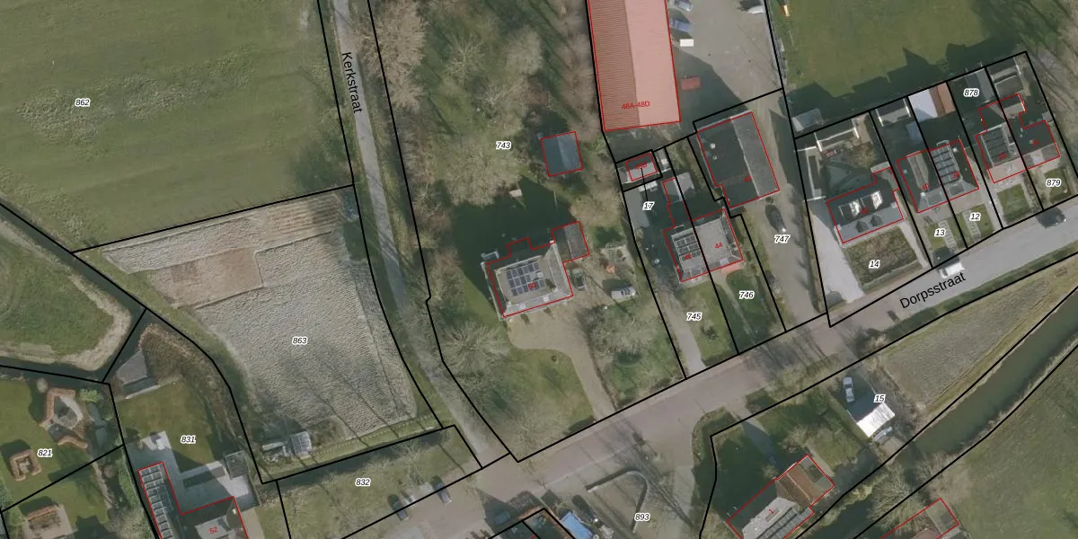 Het perceel waarop Dorpsstraat 50 staat heeft een oppervlakte van 3454 m². Dit is een zeer groot perceel. De perceeloppervlakte wordt geregistreerd door het Kadaster. Gedetailleerde informatie over de maten van dit perceel kunt u vinden in het rapport Kadastrale kaart met maatvoering van Dorpsstraat 50.