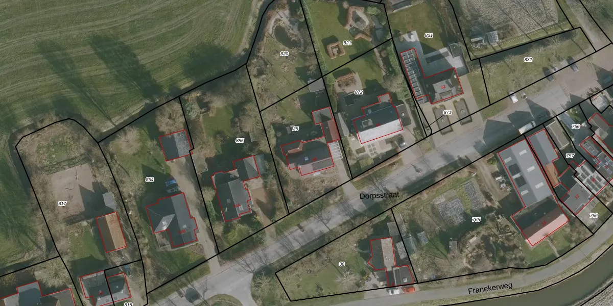 Het perceel waarop Dorpsstraat 56 staat heeft een oppervlakte van 800 m². Dit is een groot perceel. De perceeloppervlakte wordt geregistreerd door het Kadaster. Gedetailleerde informatie over de maten van dit perceel kunt u vinden in het rapport Kadastrale kaart met maatvoering van Dorpsstraat 56.