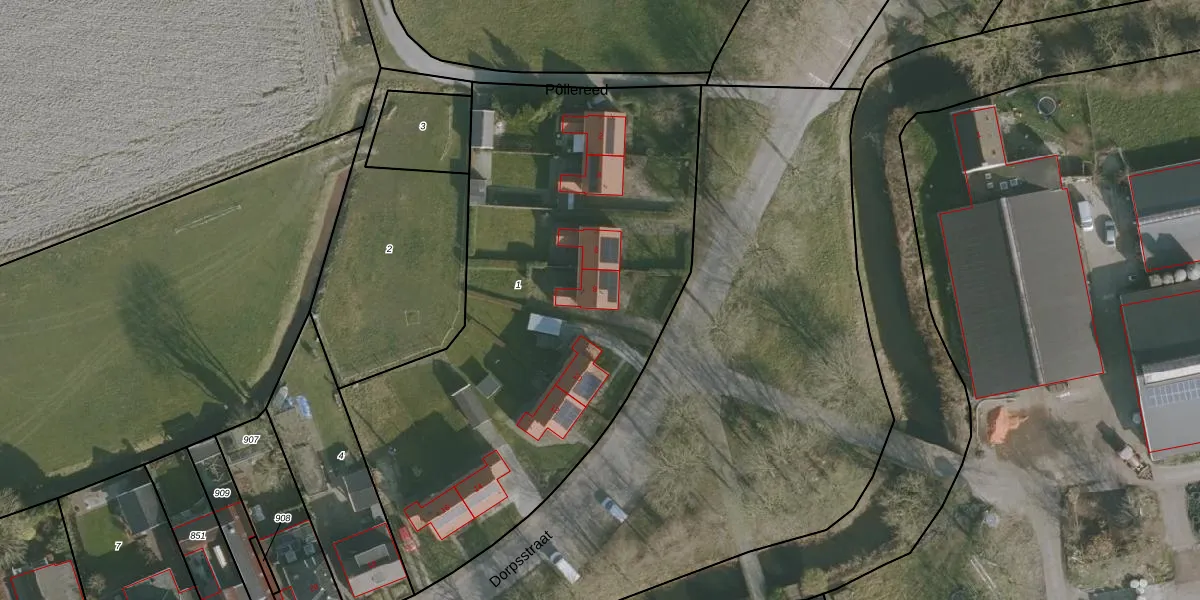 Het perceel waarop Dorpsstraat 8 staat heeft een oppervlakte van 2885 m². Dit is een zeer groot perceel. De perceeloppervlakte wordt geregistreerd door het Kadaster. Gedetailleerde informatie over de maten van dit perceel kunt u vinden in het rapport Kadastrale kaart met maatvoering van Dorpsstraat 8.