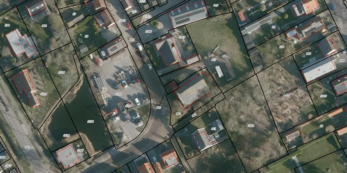 Het perceel waarop Dijkstraat 21-t staat heeft een oppervlakte van 43 m². Dit is een klein perceel. De perceeloppervlakte wordt geregistreerd door het Kadaster. Gedetailleerde informatie over de maten van dit perceel kunt u vinden in het rapport Kadastrale kaart met maatvoering van Dijkstraat 21-t.