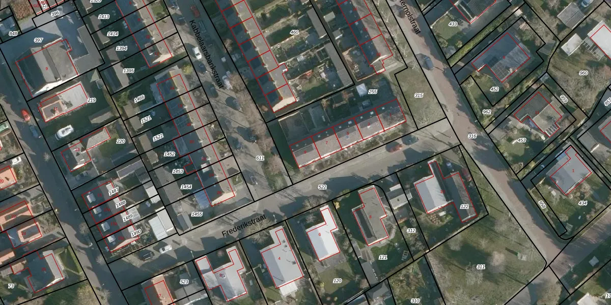 Het perceel waarop Frederikstraat 9 staat heeft een oppervlakte van 1905 m². Dit is een zeer groot perceel. De perceeloppervlakte wordt geregistreerd door het Kadaster. Gedetailleerde informatie over de maten van dit perceel kunt u vinden in het rapport Kadastrale kaart met maatvoering van Frederikstraat 9.
