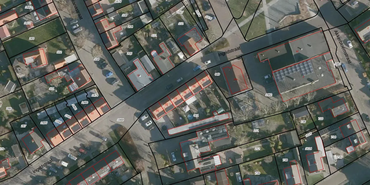 Het perceel waarop Ingridstraat 26 staat heeft een oppervlakte van 1005 m². Dit is een zeer groot perceel. De perceeloppervlakte wordt geregistreerd door het Kadaster. Gedetailleerde informatie over de maten van dit perceel kunt u vinden in het rapport Kadastrale kaart met maatvoering van Ingridstraat 26.