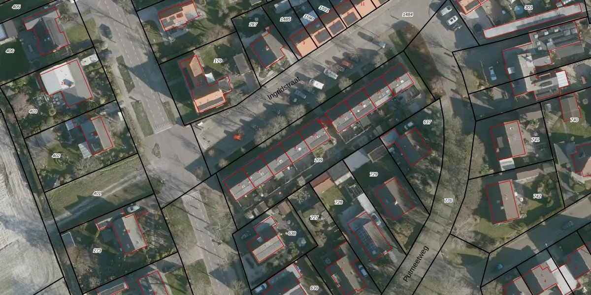 Het perceel waarop Ingridstraat 8 staat heeft een oppervlakte van 1550 m². Dit is een zeer groot perceel. De perceeloppervlakte wordt geregistreerd door het Kadaster. Gedetailleerde informatie over de maten van dit perceel kunt u vinden in het rapport Kadastrale kaart met maatvoering van Ingridstraat 8.