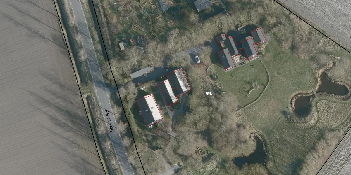 Het perceel waarop Kapelleweg 29-a staat heeft een oppervlakte van 1,9 ha. Dit is een zeer groot perceel. De perceeloppervlakte wordt geregistreerd door het Kadaster. Gedetailleerde informatie over de maten van dit perceel kunt u vinden in het rapport Kadastrale kaart met maatvoering van Kapelleweg 29-a.