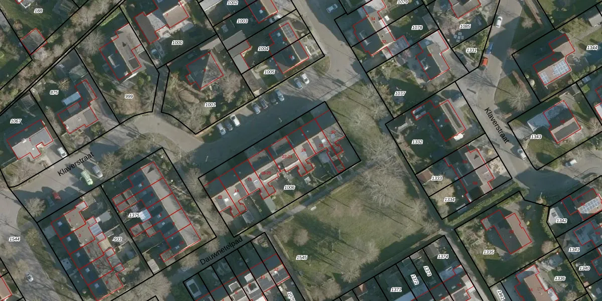 Het perceel waarop Klaverstraat 26 staat heeft een oppervlakte van 1133 m². Dit is een zeer groot perceel. De perceeloppervlakte wordt geregistreerd door het Kadaster. Gedetailleerde informatie over de maten van dit perceel kunt u vinden in het rapport Kadastrale kaart met maatvoering van Klaverstraat 26.