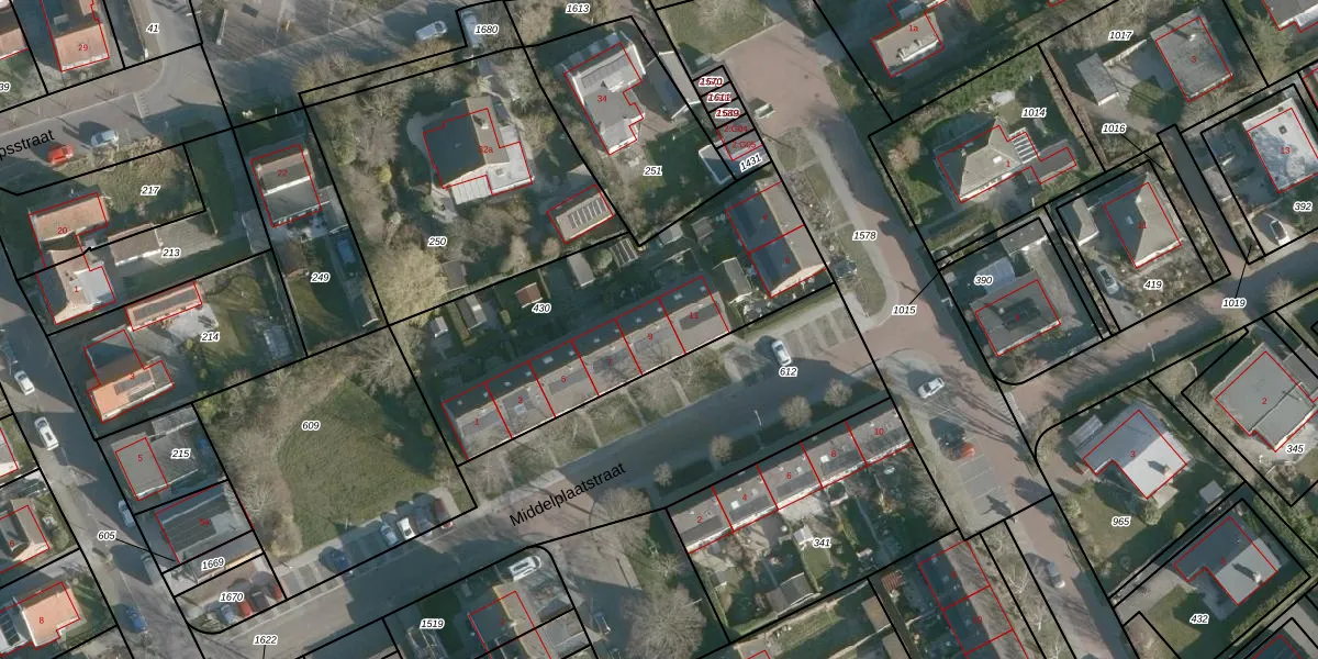 Middelplaatstraat 9 is gelegen op kadastraal perceel MDS01A430. Deze kadastrale aanduiding is uniek en wordt gebruikt door het Kadaster om eigendomsrechten en andere zakelijke rechten vast te leggen. Het perceel maakt onderdeel uit van de kadastrale gemeente Middenschouwen.