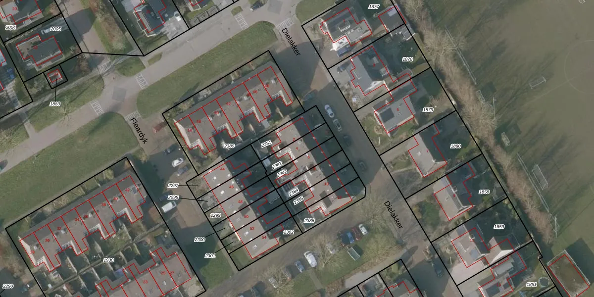 Het perceel waarop Dielakker 4 staat heeft een oppervlakte van 138 m². Dit is een middelgroot perceel. De perceeloppervlakte wordt geregistreerd door het Kadaster. Gedetailleerde informatie over de maten van dit perceel kunt u vinden in het rapport Kadastrale kaart met maatvoering van Dielakker 4.