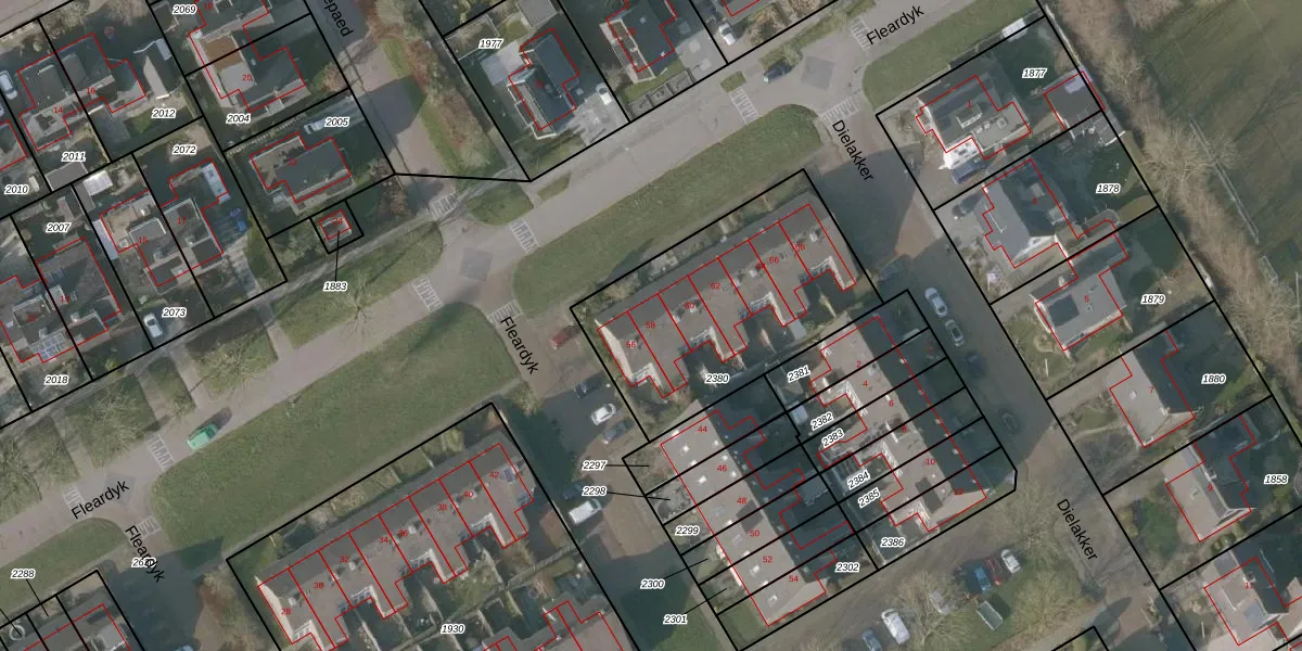 Het perceel waarop Fleardyk 58 staat heeft een oppervlakte van 1004 m². Dit is een zeer groot perceel. De perceeloppervlakte wordt geregistreerd door het Kadaster. Gedetailleerde informatie over de maten van dit perceel kunt u vinden in het rapport Kadastrale kaart met maatvoering van Fleardyk 58.