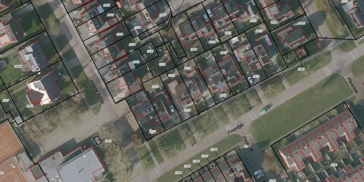 Het perceel waarop Fleardyk 7 staat heeft een oppervlakte van 300 m². Dit is een groot perceel. De perceeloppervlakte wordt geregistreerd door het Kadaster. Gedetailleerde informatie over de maten van dit perceel kunt u vinden in het rapport Kadastrale kaart met maatvoering van Fleardyk 7.