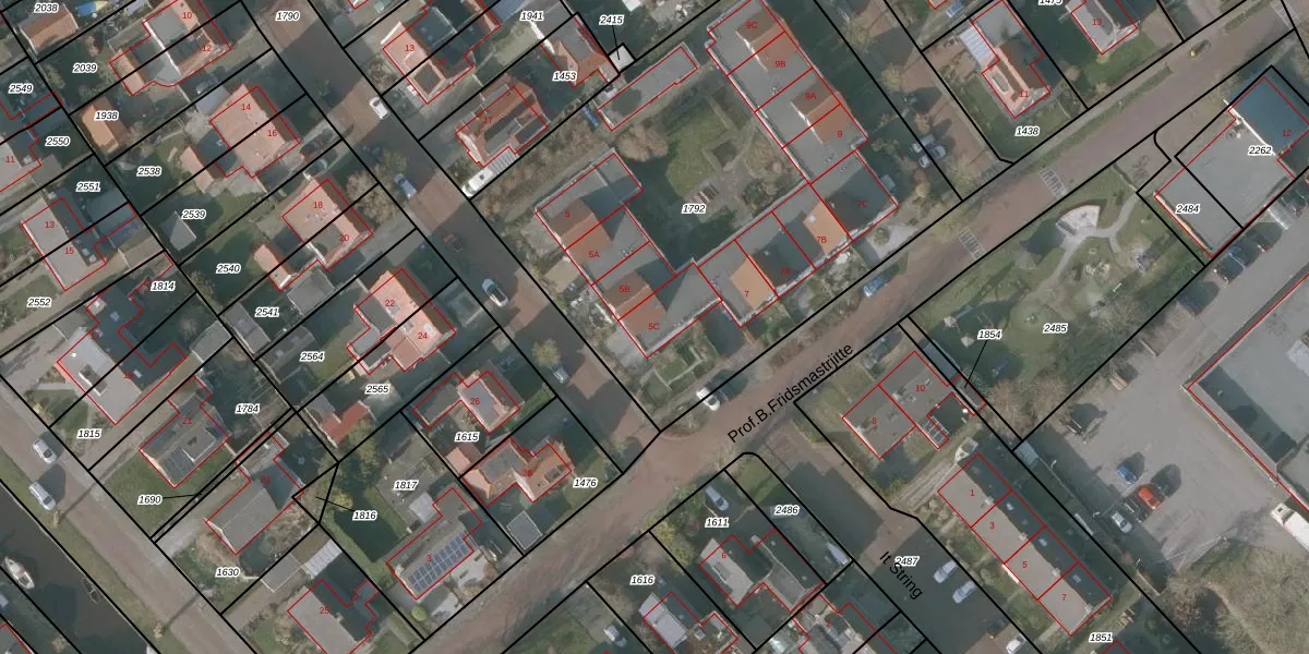 Het perceel waarop Prof.B.Fridsmastrjitte 5-C staat heeft een oppervlakte van 2780 m². Dit is een zeer groot perceel. De perceeloppervlakte wordt geregistreerd door het Kadaster. Gedetailleerde informatie over de maten van dit perceel kunt u vinden in het rapport Kadastrale kaart met maatvoering van Prof.B.Fridsmastrjitte 5-C.