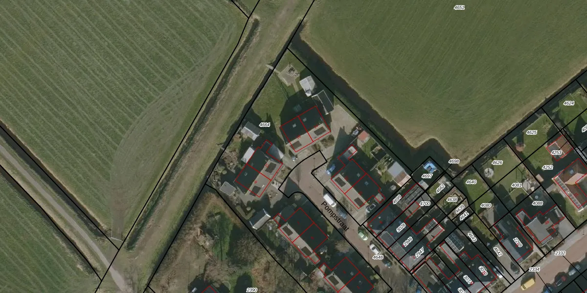 Pompstraat 16 is gelegen op kadastraal perceel LWR02B4664. Deze kadastrale aanduiding is uniek en wordt gebruikt door het Kadaster om eigendomsrechten en andere zakelijke rechten vast te leggen. Het perceel maakt onderdeel uit van de kadastrale gemeente Langweer.