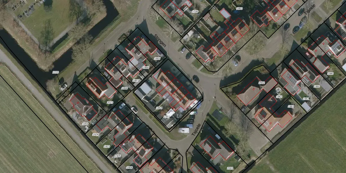 Het perceel waarop Stringen 4 staat heeft een oppervlakte van 841 m². Dit is een groot perceel. De perceeloppervlakte wordt geregistreerd door het Kadaster. Gedetailleerde informatie over de maten van dit perceel kunt u vinden in het rapport Kadastrale kaart met maatvoering van Stringen 4.