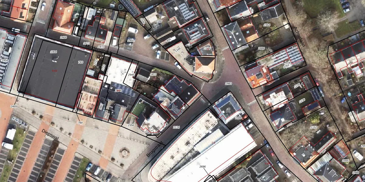 Het perceel waarop Brugstraat 1 staat heeft een oppervlakte van 384 m². Dit is een groot perceel. De perceeloppervlakte wordt geregistreerd door het Kadaster. Gedetailleerde informatie over de maten van dit perceel kunt u vinden in het rapport Kadastrale kaart met maatvoering van Brugstraat 1.